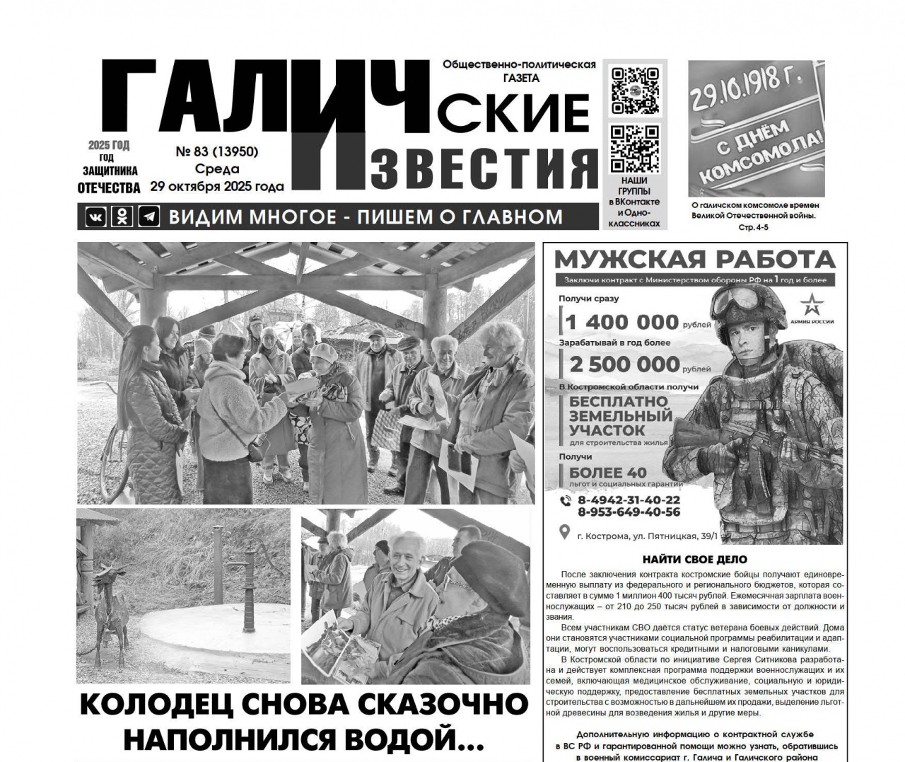 29 октября 2025 года вышел № 83 газеты «Галичские известия»