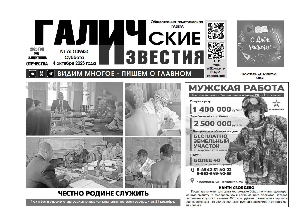 4 октября 2025 года вышел № 76 газеты «Галичские известия»