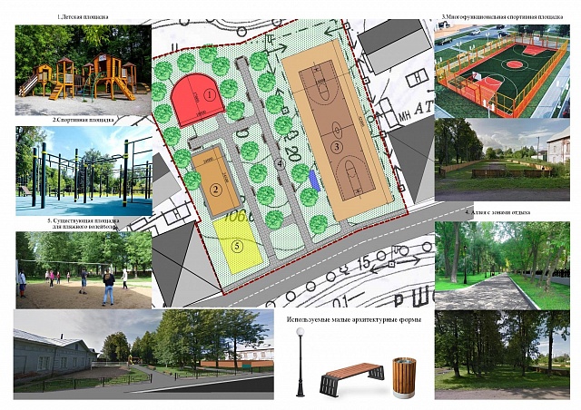 Многофункциональная площадка в Шокше предполагает несколько зон: площадку для пляжного волейбола, детскую площадку с горками и качелями, силовые снаряды, шведские стенки и площадки для воркаута – турники и брусья. Будет оборудована спортивная площадка с ловушками для мячей и воротами для мини-футбола.