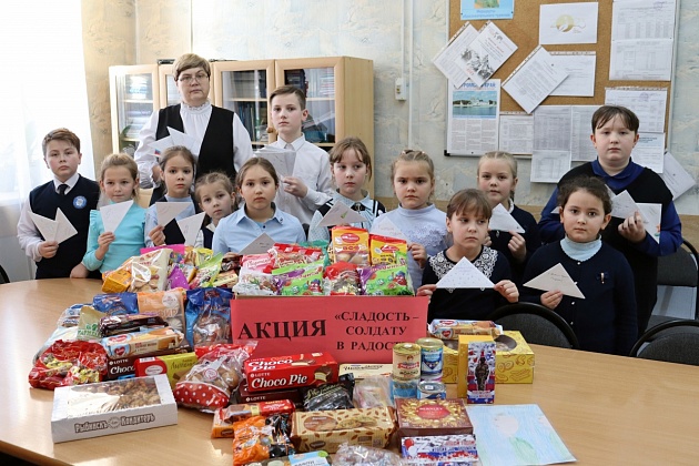 Гимназистами и их родителями уже собран целый стол сладостей и поздравительных писем для военных.